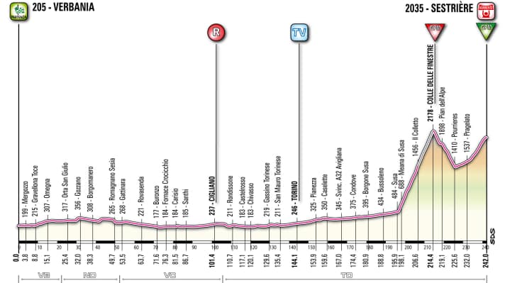 20. Etappe: Verbania - Sestrières (28. Mai)