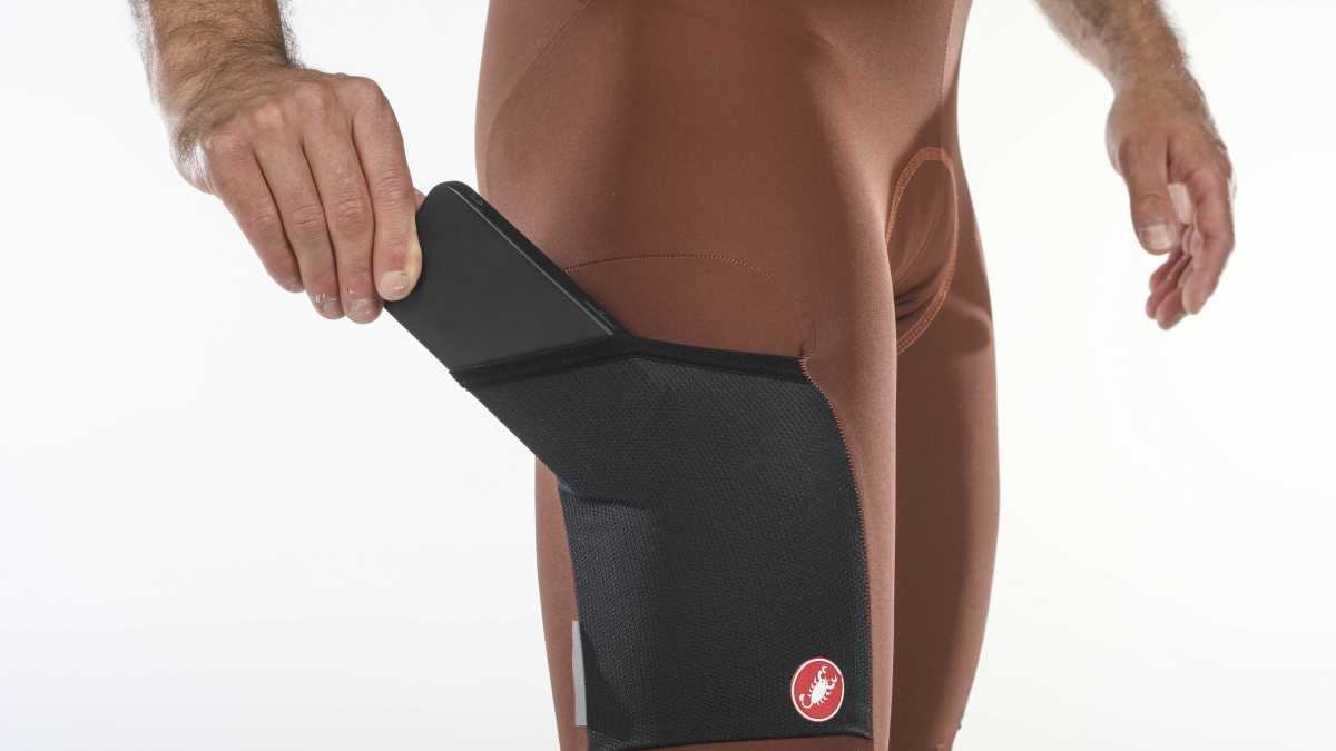 Das Kurzarmtrikot nutzt kontrastierende Stoffe an Körper und Ärmeln, um Atmungsaktivität und Aerodynamik in verschiedenen Bereichen zu verbessern. Der konturierte Kragen soll für eine bessere Passform am Hals sorgen. Das Castelli-Skorpion-Logo sitzt unter dem Arm und wird sichtbar, wenn der Fahrer in der Unterlenkerposition fährt. Drei Rückentaschen plus eine vierte mit Reißverschluss bieten Stauraum. Der YKK-Vislon-Reißverschluss läuft über die gesamte Länge, ein Silikonbund am Saum hält das Trikot in Position. Der Einsatzbereich liegt bei 18 bis 35 Grad Celsius.