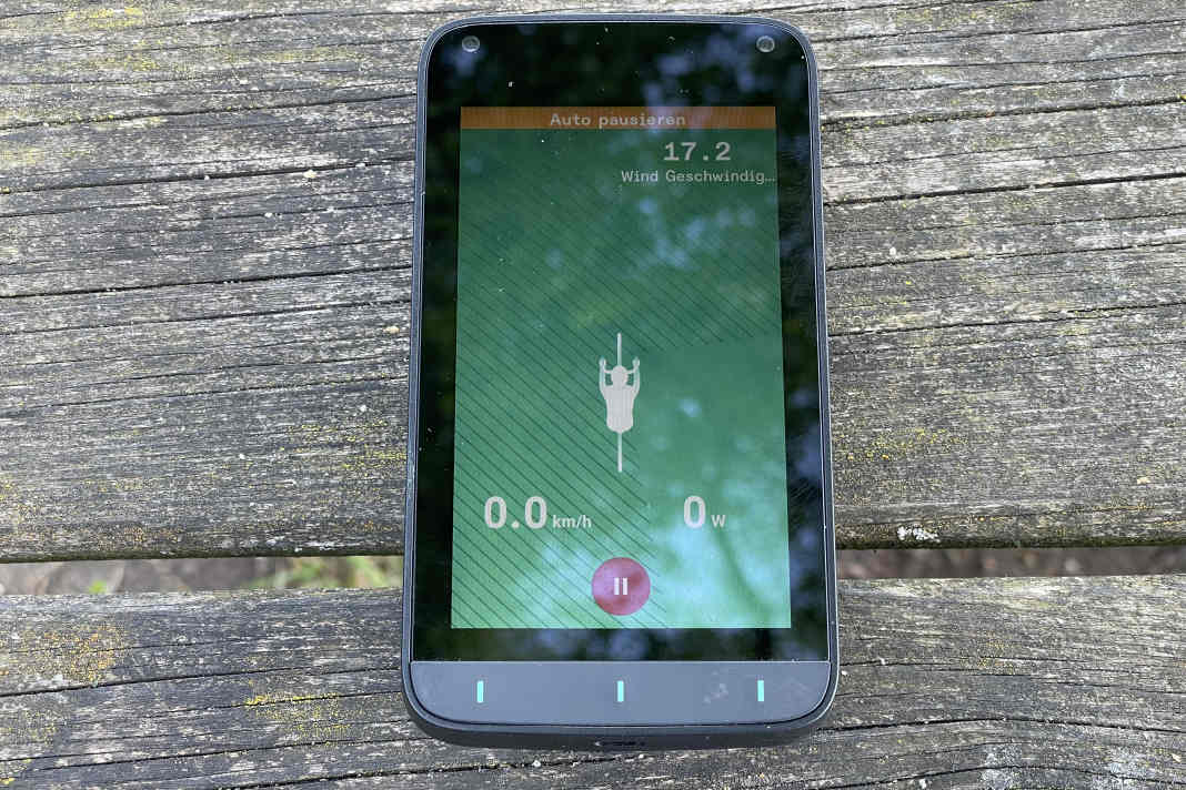Sehr gespannt waren wir auf die angekündigte Funktion der visualisierten Winddaten während der Fahrt, wie sie auch zuletzt Wahoo vorgestellt hatte. Ein Strichmuster zeigt an, aus welcher Richtung der Wind aufs Rad trifft, im rechten oberen Eck des Display steht die Windgeschwindigkeit. Jespr lässt leider nicht wissen, wie diese Daten erhoben und auf die Fahrt implementiert werden.