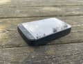 Am unteren Rand der Oberseite sind drei physische Tasten unter einer weichen Gummileiste - anders als bei anderen Navis gibt es keine Knöpfe an den Seiten. Einzig der Micro-USB-Anschluss (kein USB-C wie mittlerweile üblich) an der unteren Seite durchbricht das geschlossene Design. Auf der gewölbten Rückseite thront die Standard-Vierteldreh-Halterung, die auch Garmin & Co. nutzen.