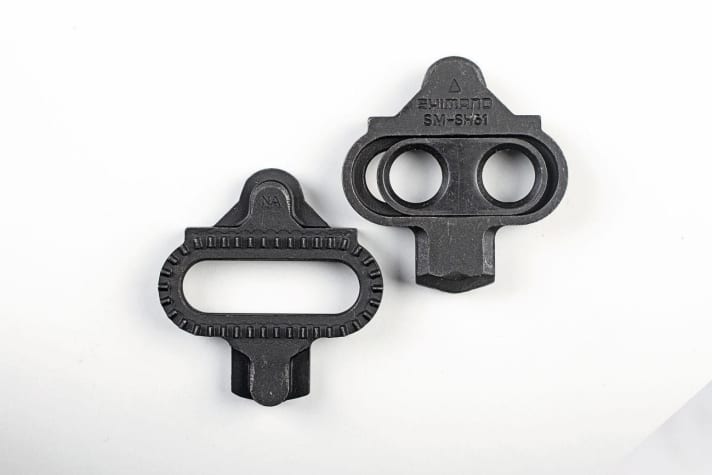 Shimano und diverse Nachahmer bauen Mountainbike-Pedale, die ebenso für Gravelbikes und Rennräder geeignet sind. Eine kleine, verschleißfeste Stahlplatte, die vertieft zwischen den Profilblöcken der Sohle montiert wird, rastet ins Pedal ein. Dadurch stören die Pedalplatten kaum beim Gehen und sind weitgehend unempfindlich gegen Verschmutzung. Nachteil: Man steht etwas kippeliger auf dem Pedal als bei den anderen Systemen - abhängig vom Verschleiß des Schuhprofils. Nach längerer Nutzung neigen die Bindungen zum Klappern, was vor allem in Verbindung mit harten Rennschuhsohlen nervig ist.
