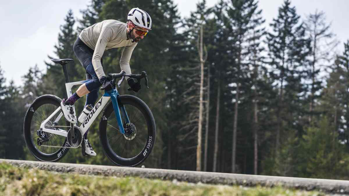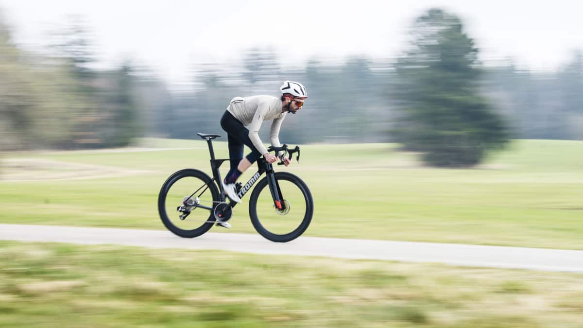 Das betrifft erst recht den Fahrer, der mindestens drei Viertel des Gesamtwiderstands verursacht, nur ein Viertel entfällt auf das Rad. Wer sich also tiefer über sein Rad beugt, die Arme eng führt (schmaler Lenker), aerodynamisch optimierte Kleidung trägt und schnelle Laufräder und Reifen fährt, realisiert bereits viel vom möglichen Speed-Potenzial. Damit lässt sich ballern.