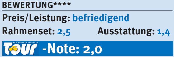 Nicht so das “Tricross”: Es ist ein Sportler durch und durch, die Geometrie ist steil, der Radstand kurz, entsprechend agil und wendig fegt das Rad um enge Kurven. Dank des Federgewichts kommt es beeindruckend schnell auf Touren. Dazu passt der steife Carbonrahmen, der bei rauer Gangart spurtreu bleibt und bergab nicht aus der Ruhe zu bringen ist. Dabei überrascht das Rad mit spürbarem Komfort. Verglichen mit anderen Crossern fährt sich das “Tricross” auf ruppigen Untergrund merklich softer, schont Bandscheiben und Nerven. Die Messwerte aus dem TOUR-Labor bestätigen dies: Mit der zum Rahmen gehörenden Sattelstütze konnten wir sehr gute Federwege ermitteln (176 Newton pro Millimeter), die Gabel federt immerhin ordentlich. Der hauseigene “Phenom”- Sattel, der vielen Fahrern passen dürfte, unterstreicht die komfortable Auslegung.