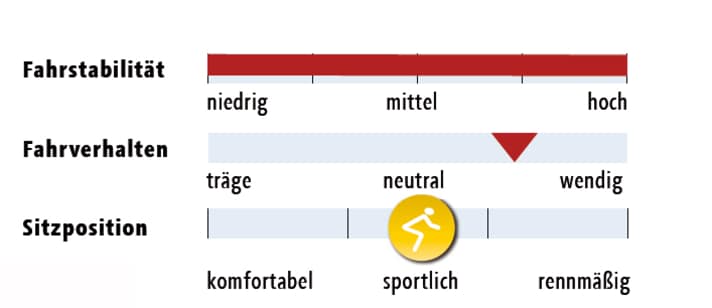 *Gewogene Gewichte; **Herstellerangabe; Testrahmengröße gefettet; ***Stack/Reach: projiziertes senkrechtes bzw. waagerechtes Maß von Mitte Tretlager bis Oberkante Steuersatzkappe