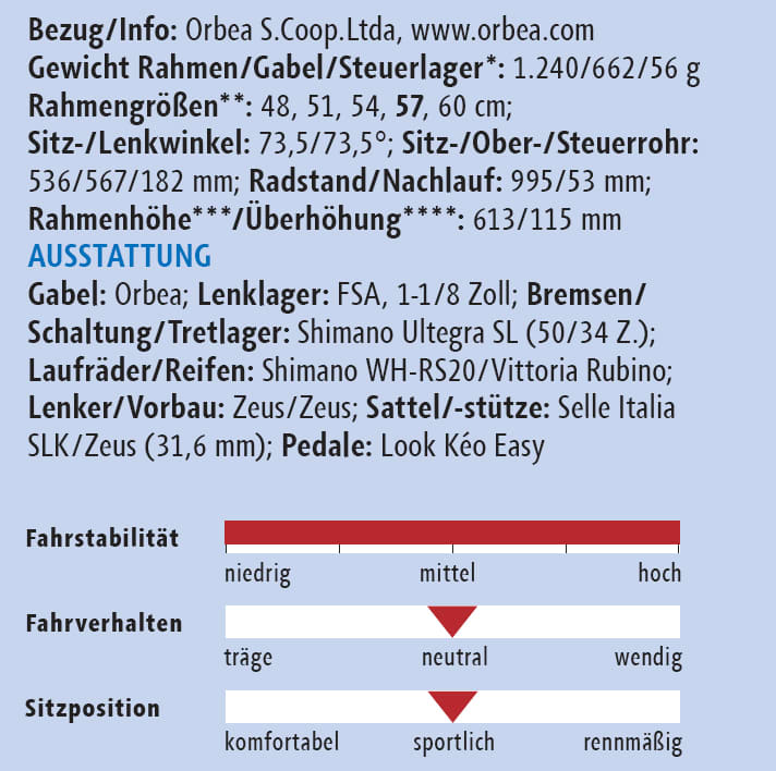 *Gewogene Gewichte; **Test-Rahmengröße gefettet; ***projiziertes Maß von Mitte Tretlager bis Oberkante Steuerrohr; ****Sattel-Steuerrohr-Überhöhung bei 75 cm Sitzhöhe (Mitte Sattelgestell – Oberkante Steuersatzkappe)