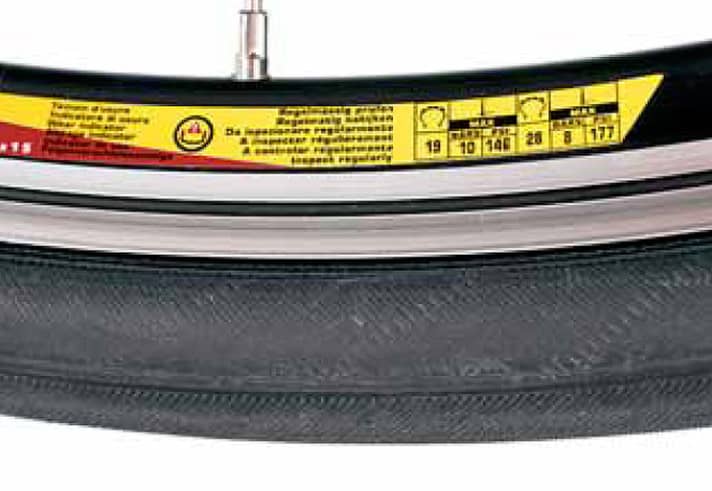 Testerkenntnisse deuten darauf hin, dass die Felge ab einer Wandstärke von einem Millimeter und weniger dem Reifendruck nicht mehr zuverlässig standhält. Viele neue Felgenmodelle besitzen deshalb Verschleiß-Anzeiger in Form umlaufender Nuten oder Ausfräsungen. Je nach Ausführung werden diese sichtbar oder verschwinden, wenn die Felge verschlissen ist.