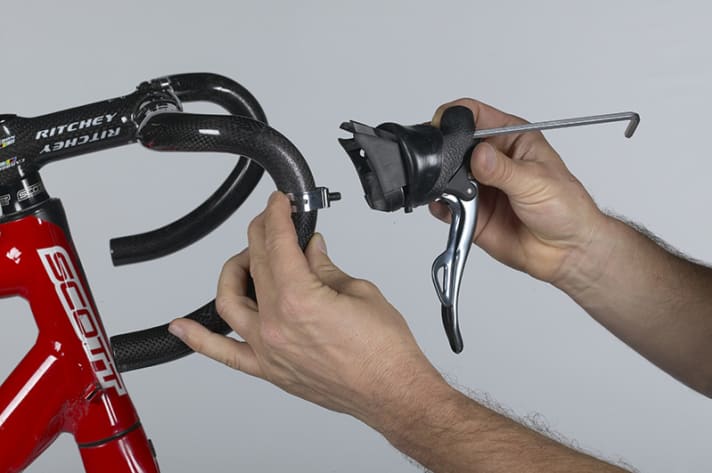 2. Wenn Sie sich mit der Position von Lenker, Griffen und Zügen nicht sicher sind, machen Sie eine Probefahrt ohne Lenkerband. Doch Vorsicht: Der Lenker ist dann sehr glatt, fahren Sie Ihre Proberunde deshalb nicht bei Regen und auf jeden Fall mit griffigen Radhandschuhen.
